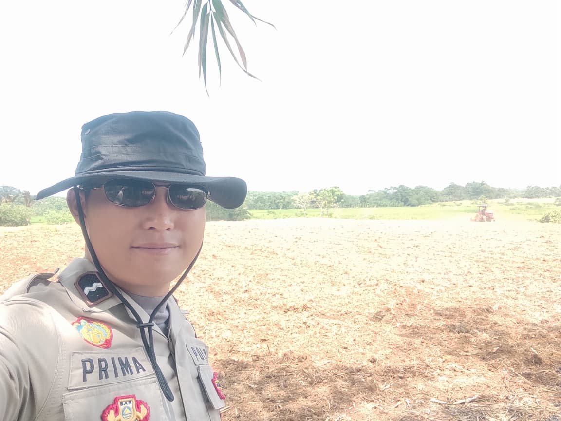AIPDA Prima Yananta, S.H., Bhabinkamtibmas Desa Rancakalapa, bersama Kelompok Tani Rancagabus meninjau langsung kesiapan lahan yang direncanakan untuk penanaman jagung hibrida seluas dua hektare dalam program “Satu Desa Dua Hektare”.