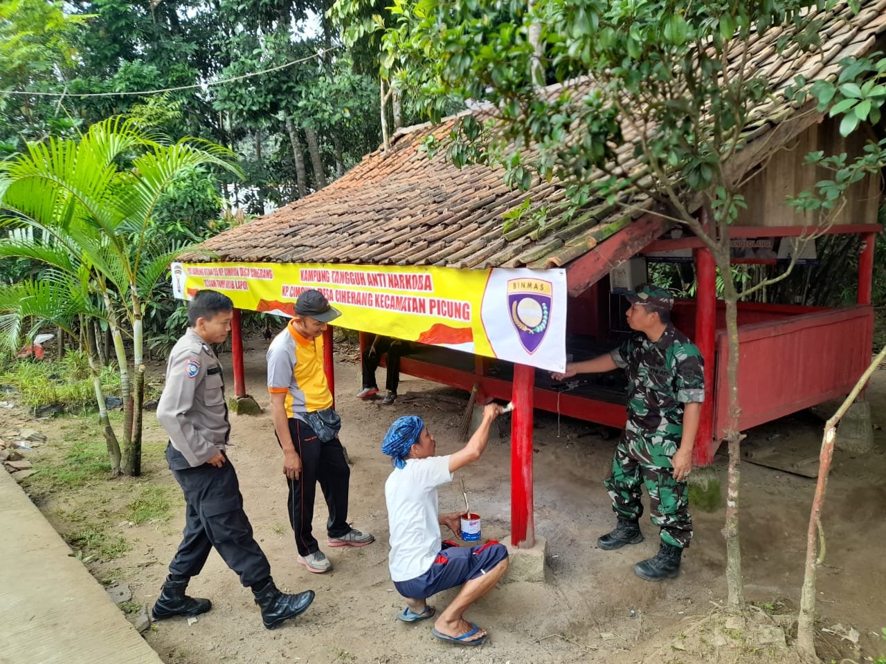 Polsek Picung Benuanewshanten.com, Polres Pandeglang, Mengemban tugas sebagai anggota polri, Kapolsek Picung Iptu Aris Munandar bersama anggota melaksanakan pembentukan poskamling kampung tangguh anti narkoba yang berada di kp. Cimoyan desa ciherang, Sabtu (23/07/2022).