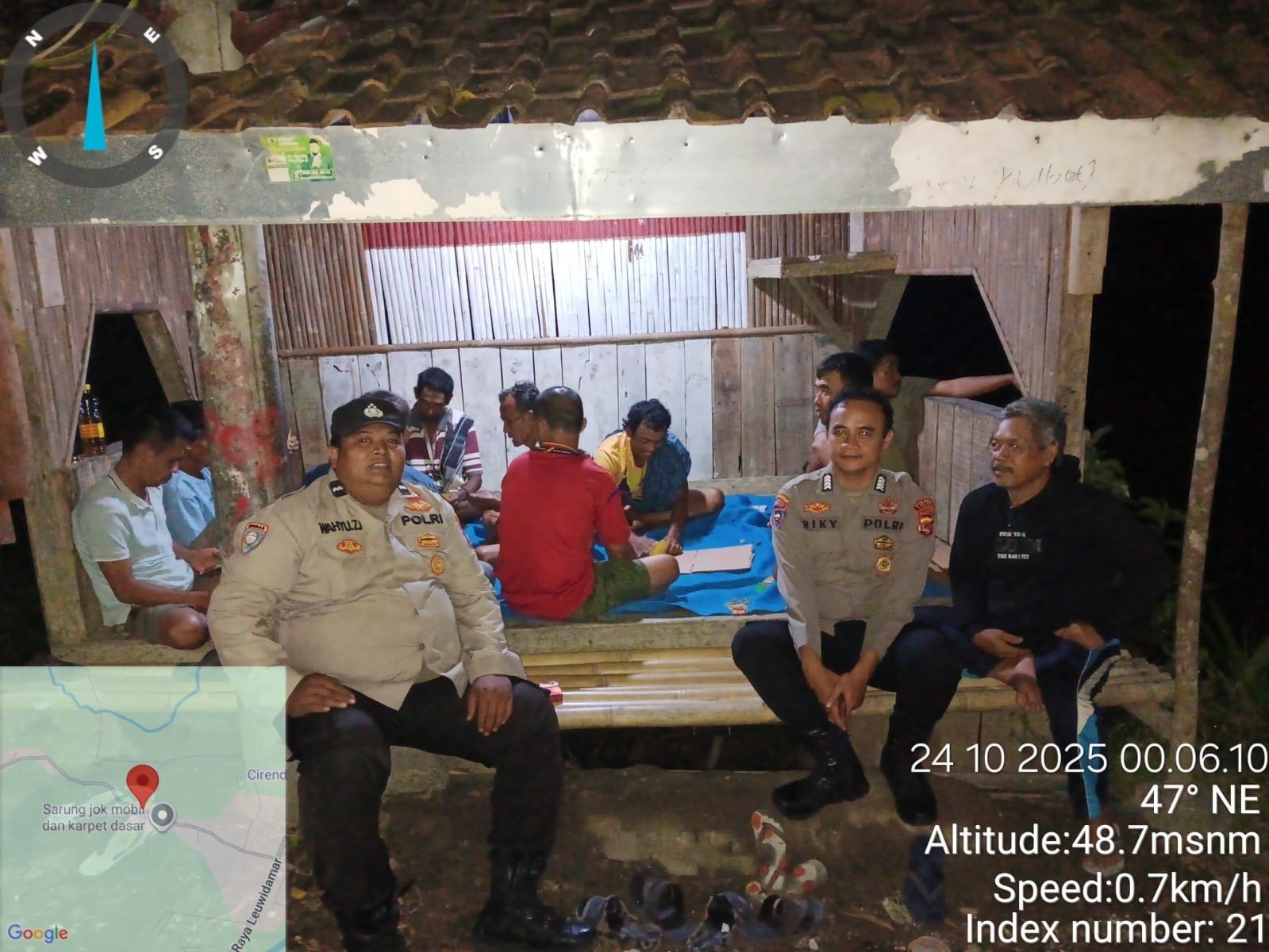 LEBAK Benuanewsbanten.com, Berikan rasa aman anggota Polsek Rangkasbitung,AIPDA Wahyu Zjatmiko dan BRIPKA Riki Andriana,Sambangi poskamling, di Kampung Cirende Alingan,Desa Kalanganyar, Kecamatan Kalanganyar, Kabupaten Lebak.Kamis malam 23 Oktober 2025,pukul.23.45 Wib.