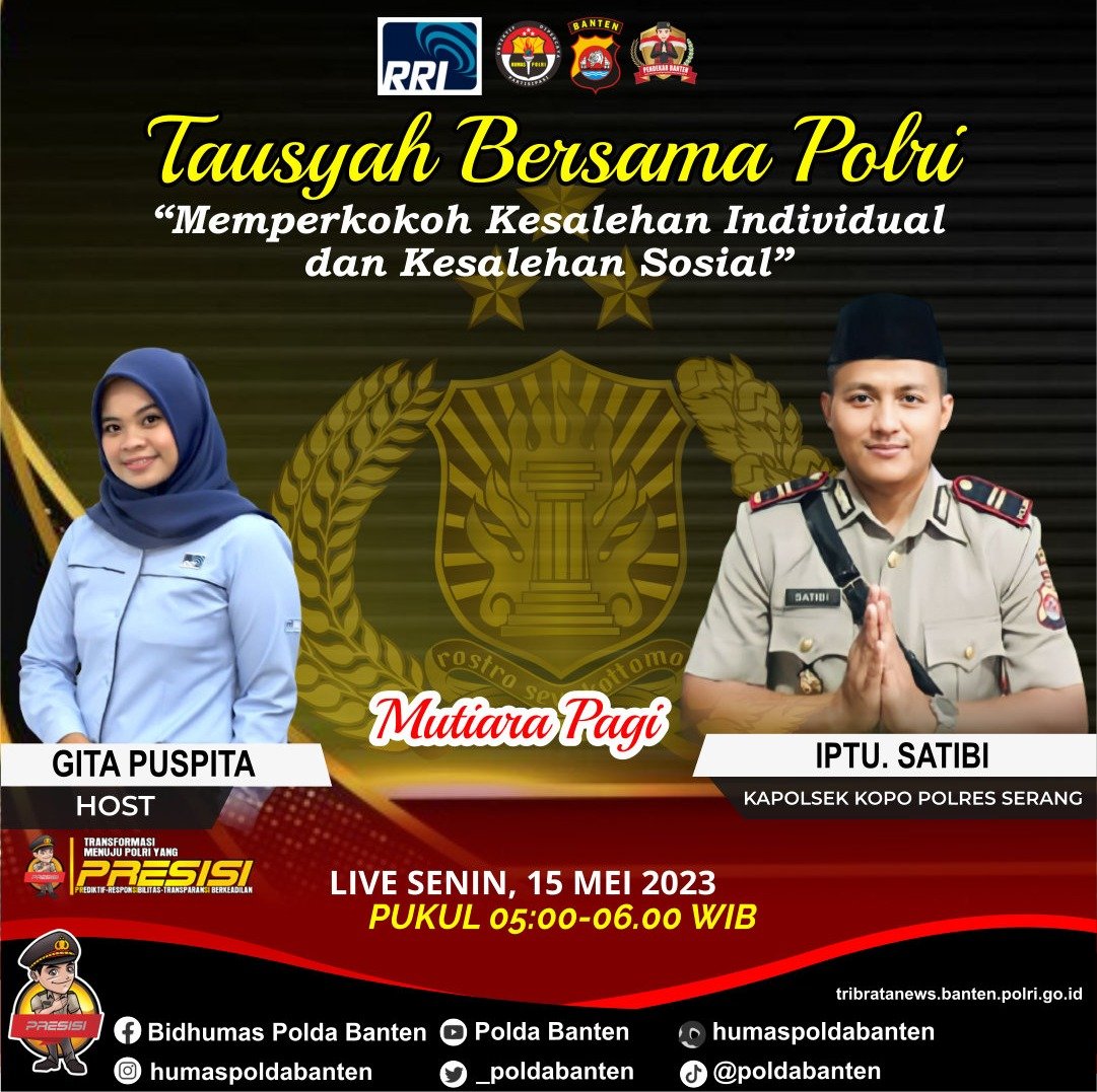 Serang Benuanewsbanten.com – Kapolsek Kopo Polres serang IPTU Satibi menjadi narasumber dalam program Mutiara Pagi Tausiyah Bersama Polri dengan tema “Memperkokoh Kesalehan Individual dan Kesalehan Sosial” yang diselenggarakan Radio Republik Indonesia (RRI) pada Senin (15/05) pukul 05.00 Wib.