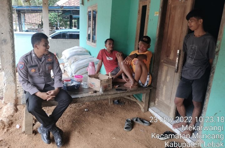 Lebak Benuanewsbanten.com Bhabinmas Polsek Muncang Polres Lebak Brigadir Jumri Setiawan menindak lanjuti Program Quick Wins Presisi Kapolri, laksanakan Sambang Rutin di Desa Mekarwangi kecamatan Muncang Kabupaten Lebak. Pada Rabu (23/11/2022).
