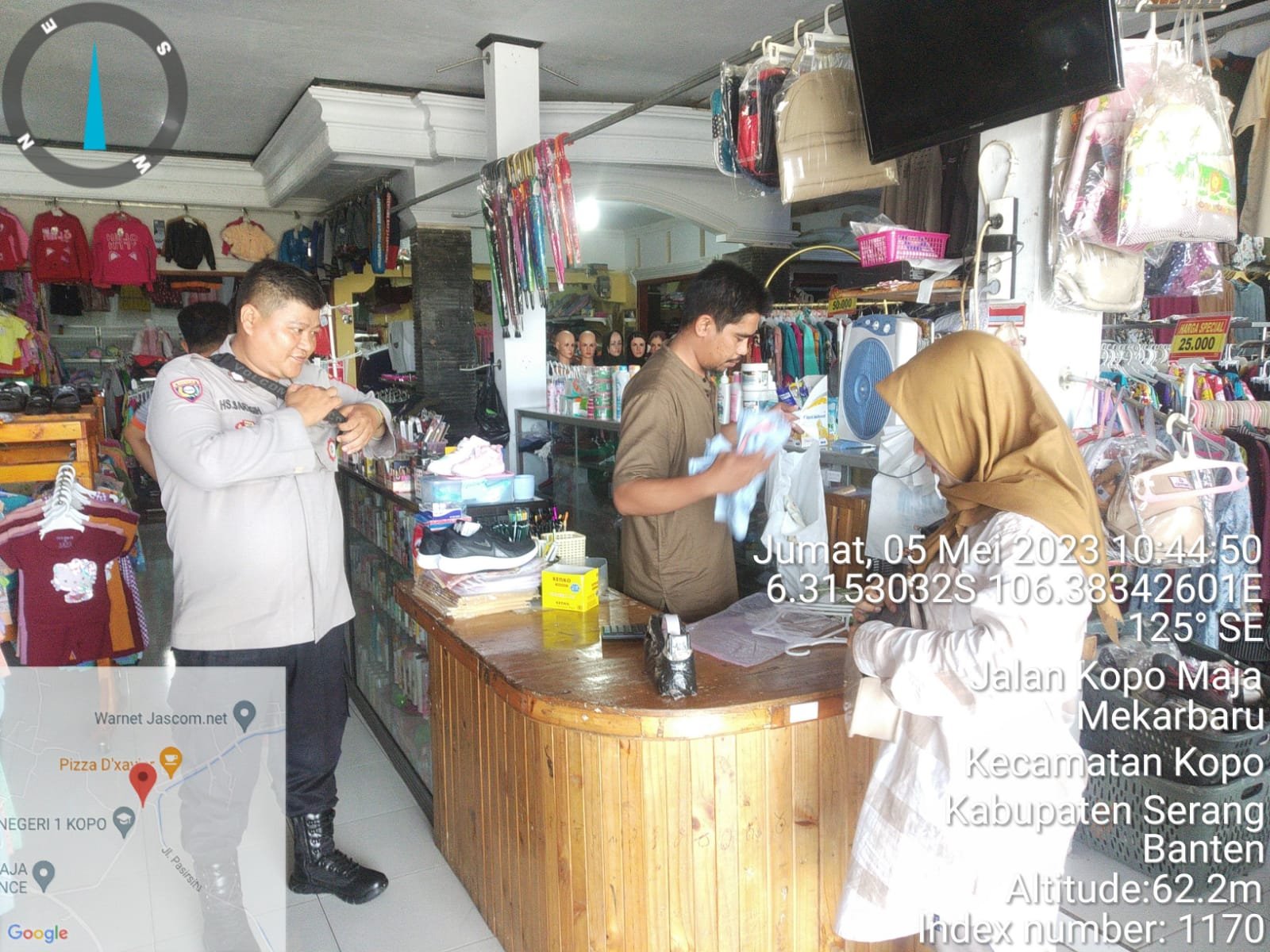 Sambang kamtibmas dengan sasaran toko yang berada di wilayah hukum Polsek Kopo Polres Serang dalam kesempatan kali ini Bhabinkamtibmas memberikan himbauan tentang kamtibmas kepada pemilik toko tersebut.