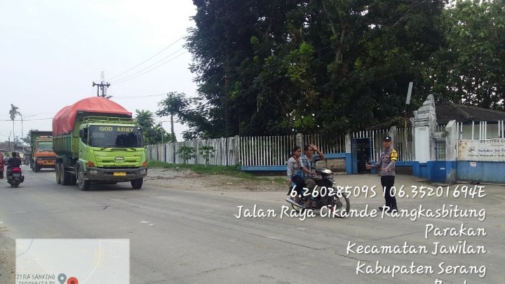 SERANG Benuanewsbanten.com Bhabinkamtibmas Polsek Jawilan Polres Serang Bripka Jaenal dan Briptu Hartanto melaksanakan giat strong poin sore di Jalan Raya Cikande Rangkasbitung depan PT.Citra Mahasurya Industries Desa Majasari, Kecamatan Jawilan, Rabu (10/5/2023) Sore.