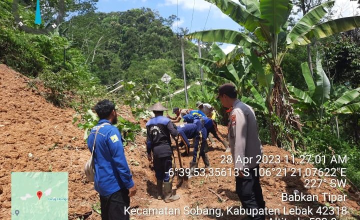 Lebak Benuanewsbanten.com – Kali ini Tanah longsor terjadi di wilayah Kecamatan Sobang, Kabupaten Lebak, Provinsi Banten, Jumat 28 April 2023.Sekira 11:27 Wib. Satu titik tanah longsor tersebut terjadi di jalan Cipanas Warung Banten kecamatan Sobang.