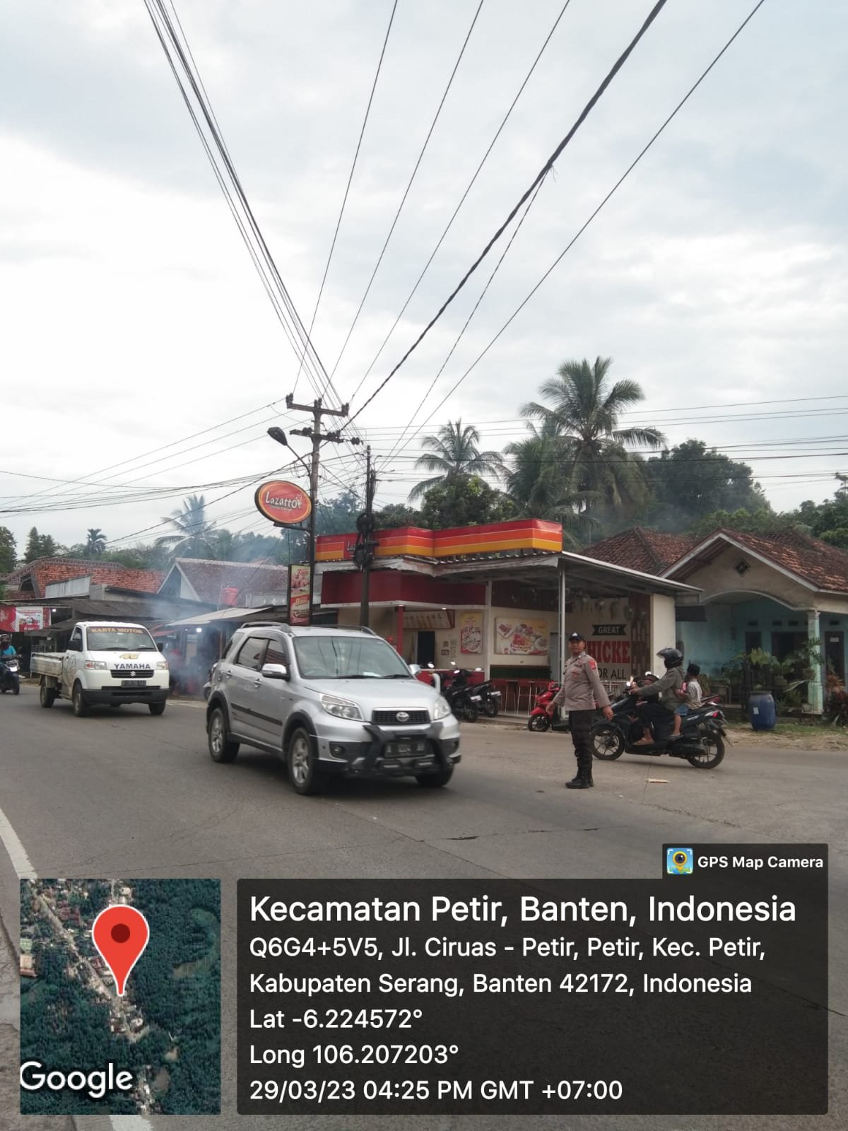 PETIR Benuanewsbanten.com Dalam mewujudkan Kamtibcar Lantas Anggota Unit Samapta Polsek Petir Polres Serang Polda Banten Bripka Imam Budi. SH melaksanakan Pengaturan di Jln. Raya Ciruas Petir Pertigaan Mako Polsek Petir Desa Petir Kec. Petir Kab. Serang. Rabu (29/03/2023) pukul 16.30 WIB.